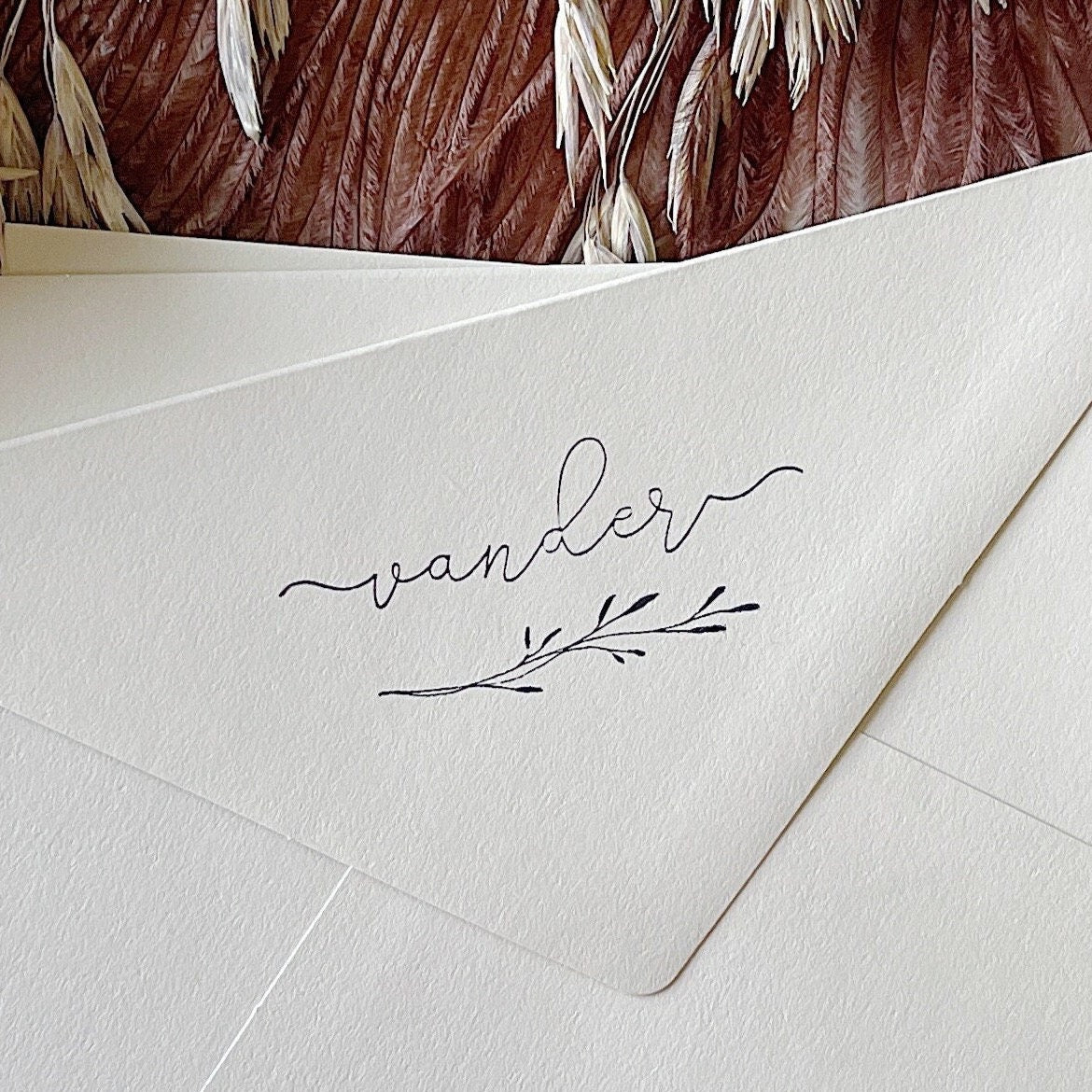 Our custom rubber stamps are the perfect solution to your wedding DIY needs. Choose from a huge selection of styles and designs to fit any trend or season. Our rubber stamps can be used for many applications such as napkins, favor tags, gift bags, thank you cards and so much more.